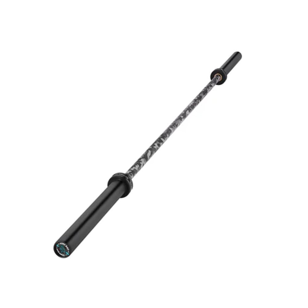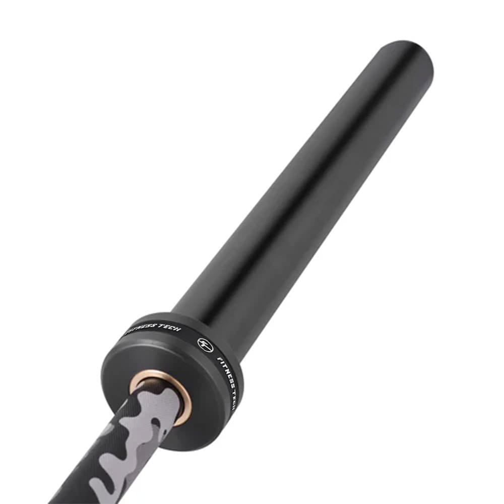 Barra olímpica de camuflaje de 50 mm. grosor y 220cm de largo con 4 rodamientos a cada lado.