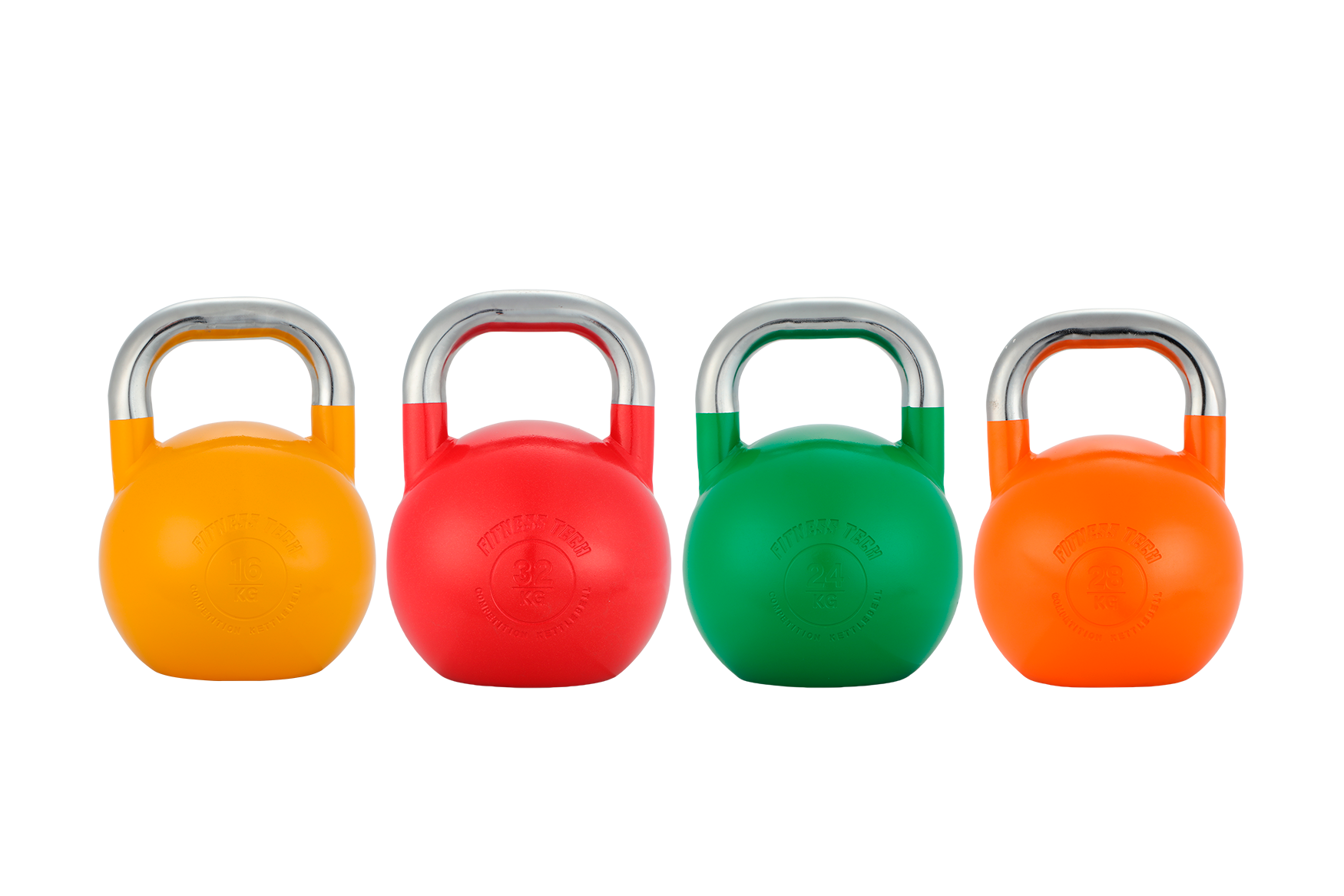 Disponibles en un rango de pesos de 4 a 32 kg, las kettlebells de competición de Fitness Tech incluyen un sistema de codificación por color que facilita la identificación visual rápida durante los entrenamientos. Son el complemento perfecto para mejorar fuerza, potencia, coordinación y estabilidad, tanto en gimnasios profesionales como en espacios de entrenamiento doméstico.