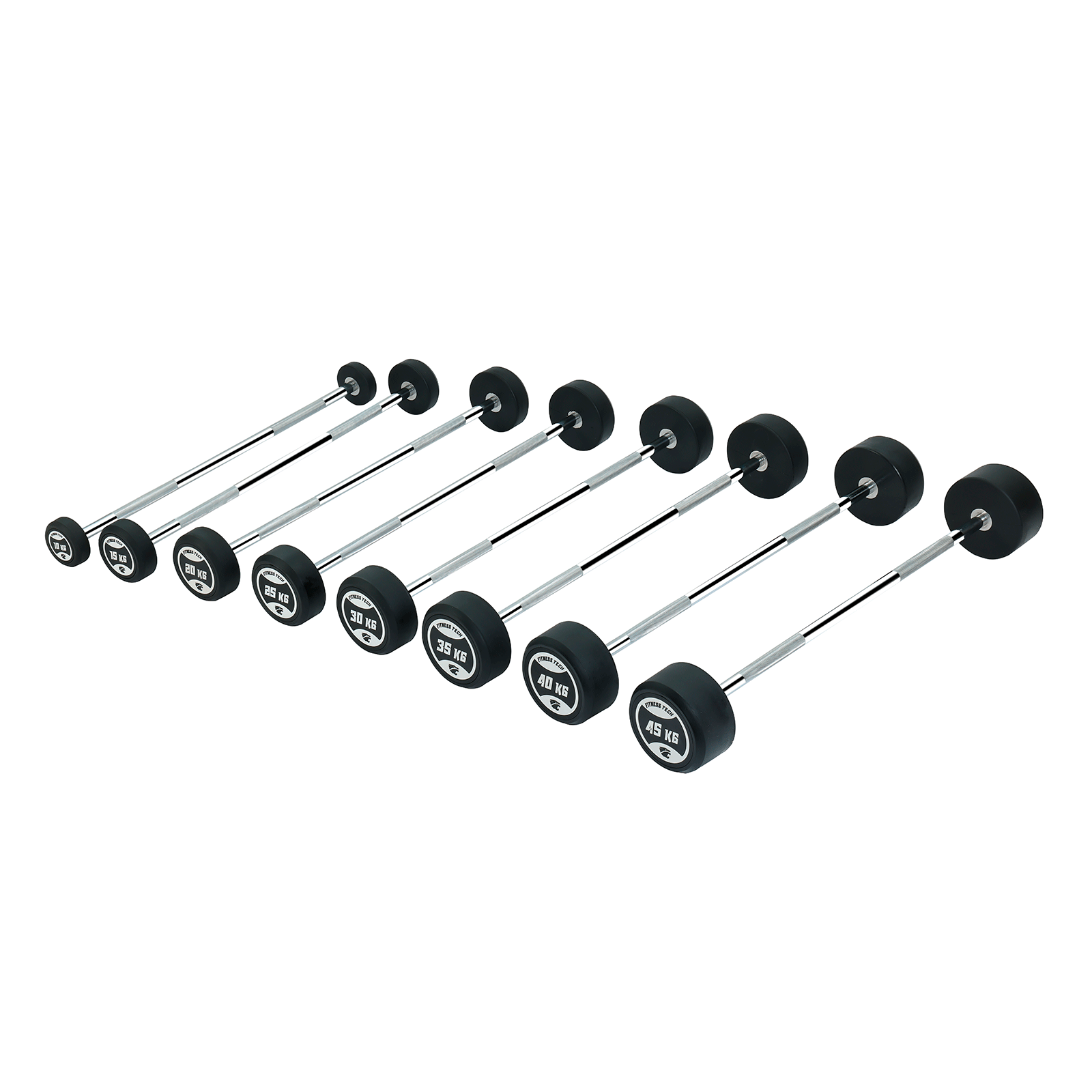 Gracias a su construcción robusta y al diámetro de agarre de 30 mm, garantizan durabilidad y un agarre cómodo incluso en sesiones intensas. Las barras están disponibles en incrementos de 5 kg, desde 10 kg hasta 45 kg, adaptándose perfectamente a rutinas progresivas de fuerza. Su diseño compacto también facilita el uso en áreas reducidas, ofreciendo la misma estabilidad que una barra tradicional pero en un formato más manejable.