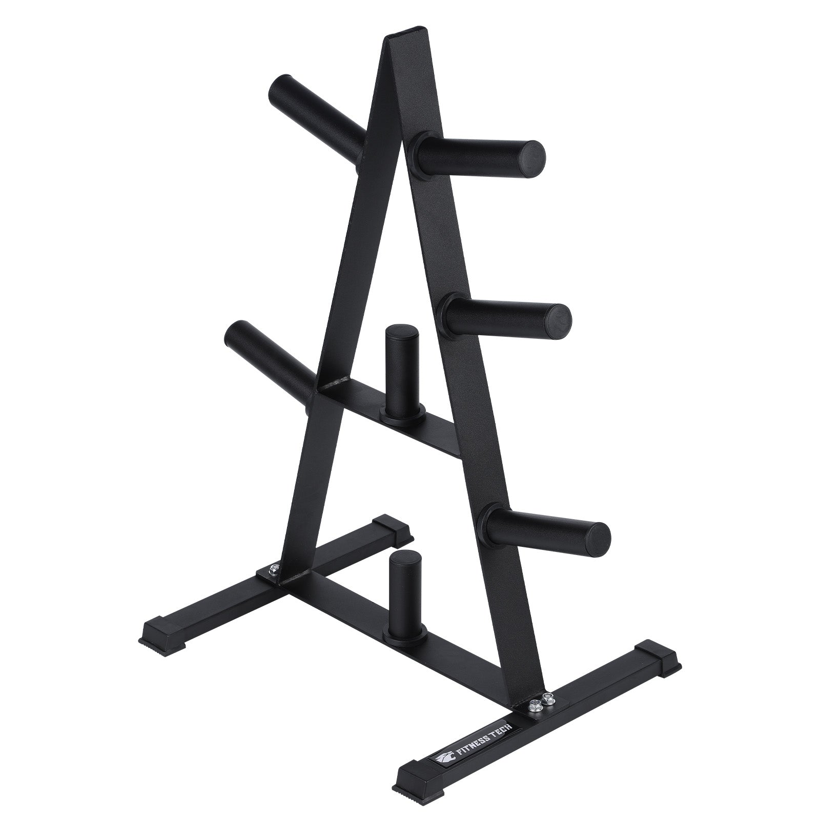 Creado con un diseño elegante y una robusta estructura. Consta de 7 barras exteriores donde se pueden guardar todos los tamaños habituales de discos de pesas. Las dos patas aseguran una alta capacidad de carga y un soporte estable y las tapas de plástico protegen el suelo. Encuentre su disco de pesas deseado con facilidad.